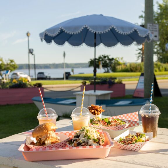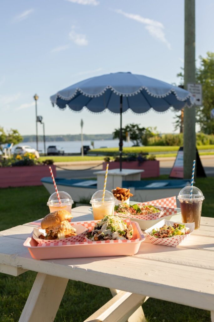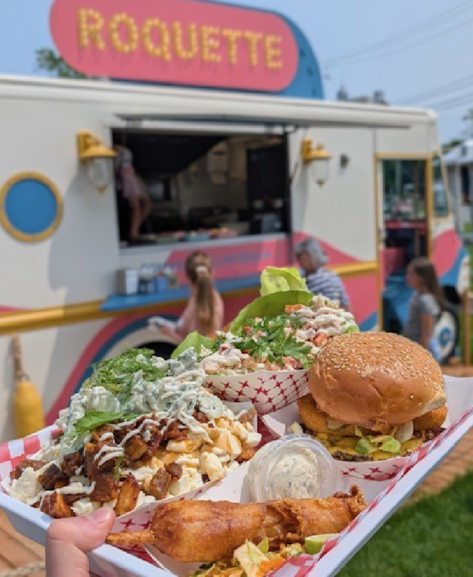 With a stunning view of the St. Lawrence River, Roquette offers a festive retro atmosphere, welcoming indoor and outdoor spaces, picnic tables built into wooden boats, and a photobooth space right inside the food truck.