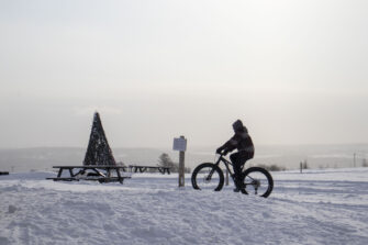 Saint-LaurentEn hiver, Le Bunker devient un terrain de jeu pour toute la famille. Ski de fond, raquette et glissades sont au rendez-vous. Des bulles extérieures chauffées permettent de se réchauffer et de luncher confortablement en plein air. Et grand classique de l’hiver au Québec, la tire sur la neige fait le bonheur des petits et des grands.